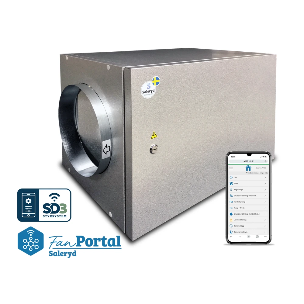 Kanalfläkten finns i olika modeller beroende på anslutningsstorlek och typ av styrning: 0-10V eller SD3/WIFI.